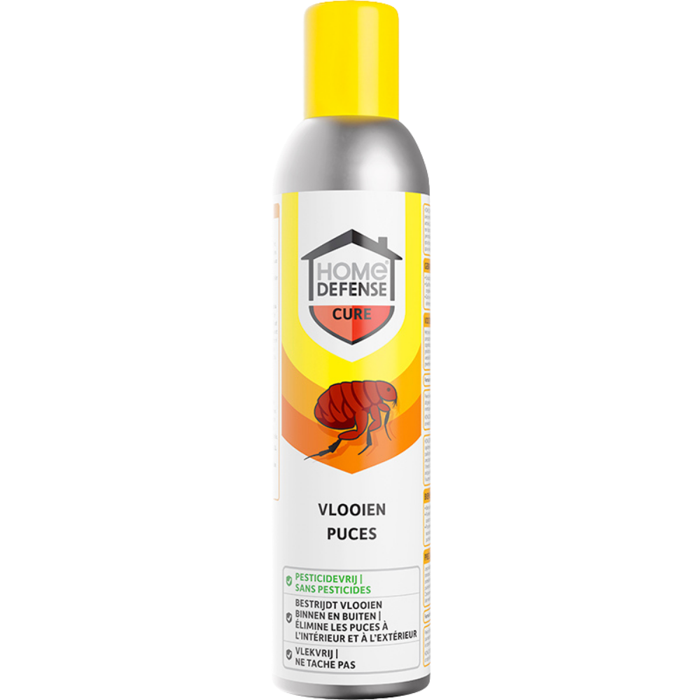 HOME DEFENSE® Vlooien Spray is een pesticidevrije spray en bestrijdt vlooien snel en effectief. Het product kan in elke ruimte van het huis gebruikt worden. Zodra het ongedierte in contact komt met het middel, vormt er een dun transparant laagje om het insect heen. Hierdoor wordt het insect geïmmobiliseerd en uiteindelijk gedood. Pas HOME DEFENSE® Vlooien Spray toe op tapijten, vloeren, manden en tussen kieren en naden. De spray vlekt niet.