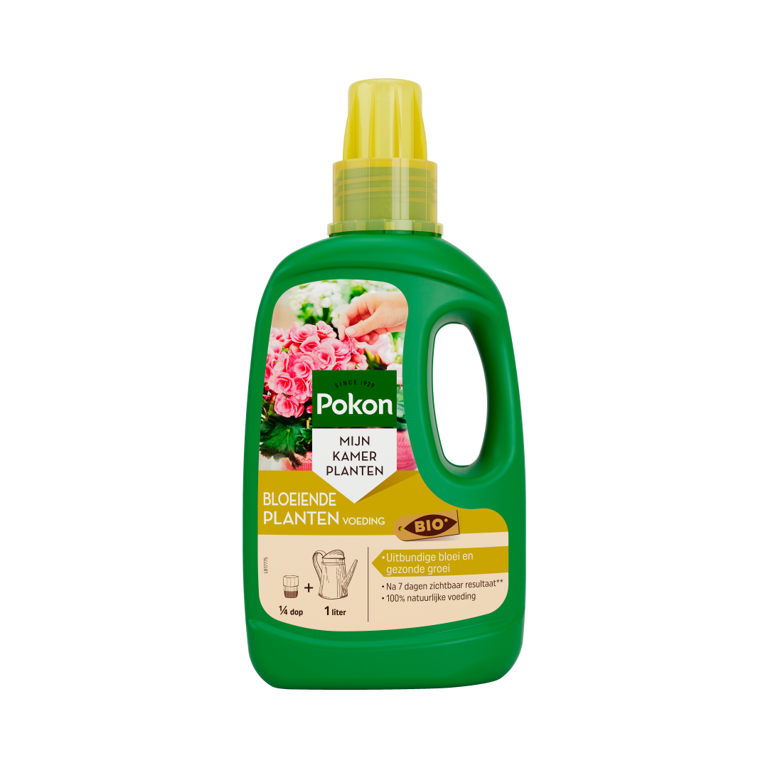Pokon Bio Bloeiende Planten Voeding stimuleert de plant tot vorming van diepgroen blad en een uitbundige bloei. Deze uitgebalanceerde voeding bevat essentiële 100% natuurlijke voedingsstoffen en een rijke mix van sporenelementen. Dit geeft al na 7 dagen resultaat **in vergelijking met niet-bemeste planten. Hierdoor blijven jouw bloeiende kamerplanten sterk en gezond!