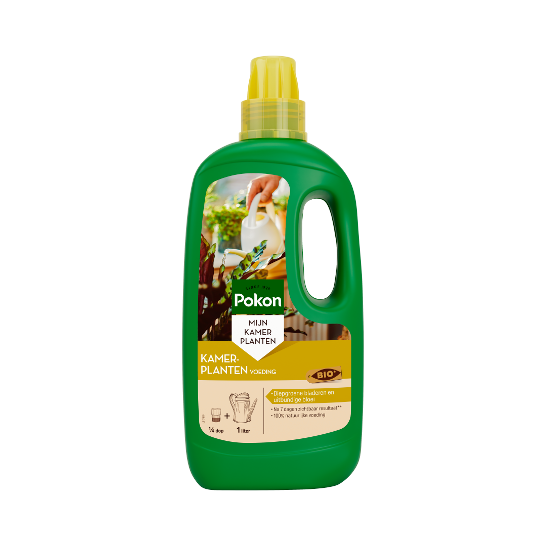 Pokon Bio Kamerplanten Voeding stimuleert de plant tot vorming van diepgroen blad en een uitbundige bloei. Deze uitgebalanceerde voeding bevat essentiële 100% natuurlijke voedingsstoffen en een natuurlijke mix van sporenelementen. Dit geeft al na 7 dagen resultaat **in vergelijking met niet-bemeste planten. Hierdoor blijven jouw kamerplanten sterk en gezond!