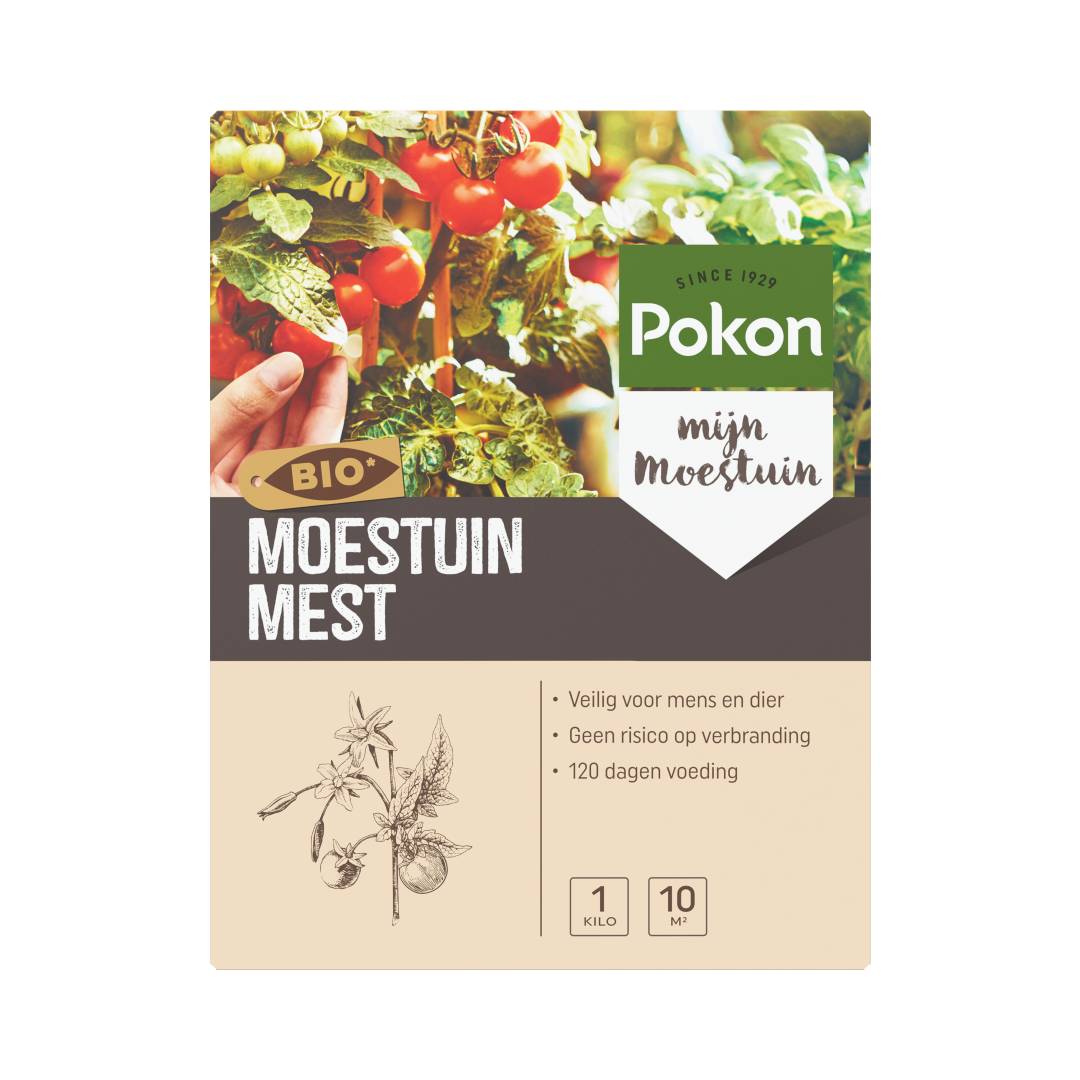 Deze biologische meststof is geschikt voor universeel gebruik in de moestuin. Pokon Bio Moestuin Mest is rijk aan kalium, wat zorgt voor sterke moestuinplanten met kwalitatief betere groenten en vruchten. Een goed bemeste bodem is een belangrijke voorwaarde voor een rijke oogst. Gezonde planten hebben meer weerstand tegen ziektes en plagen. Pokon Bio Moestuin Mest geeft tot 120 dagen voeding en geeft geen risico op verbranding. Pokon Bio Moestuin Mest kan in de maanden februari t/m augustus gebruikt worden. Voor het beste resultaat voed je je planten 2 keer per jaar, in het vroege voorjaar en in de zomer.