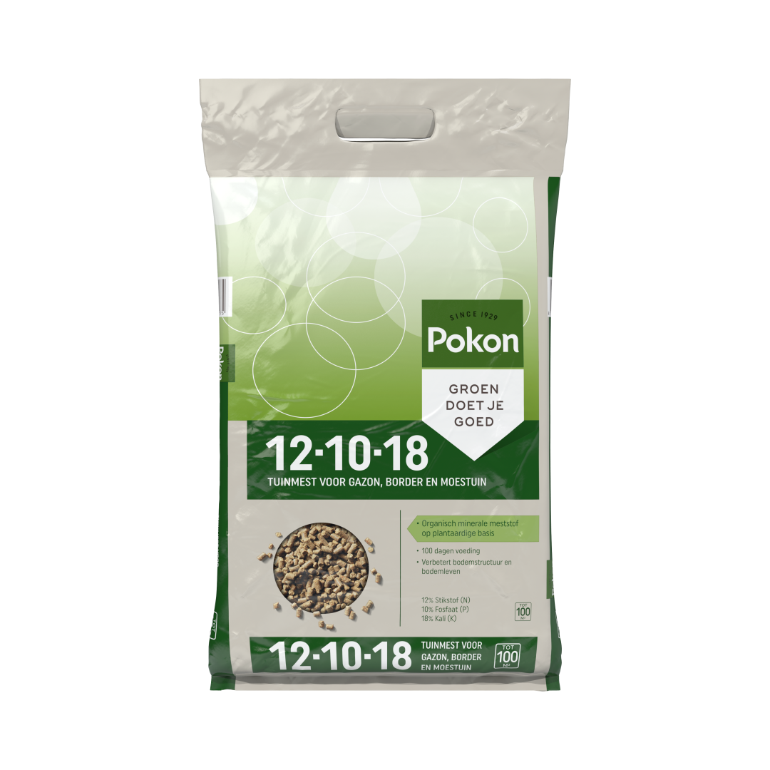 Pokon Tuinmest 12-10-18 is een universele meststof die geschikt is voor de hele tuin. Deze meststof zorgt ervoor dat je gazon, border en ook de moestuin de benodigde voedingsstoffen krijgen voor een stevige groei en een rijke bloei. Bemest je gazon, border en moestuin van maart t/m augustus elke 3 maanden.